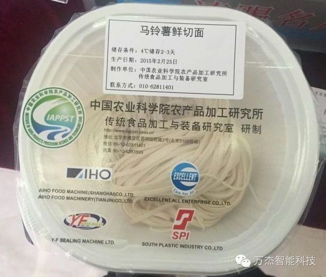 (萬杰智能鮮面機制作出馬鈴薯鮮切面成品)